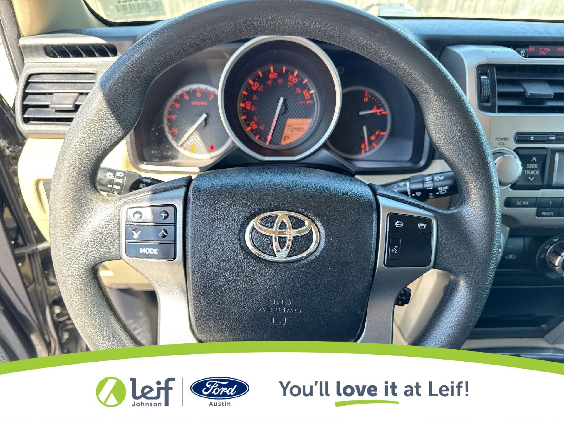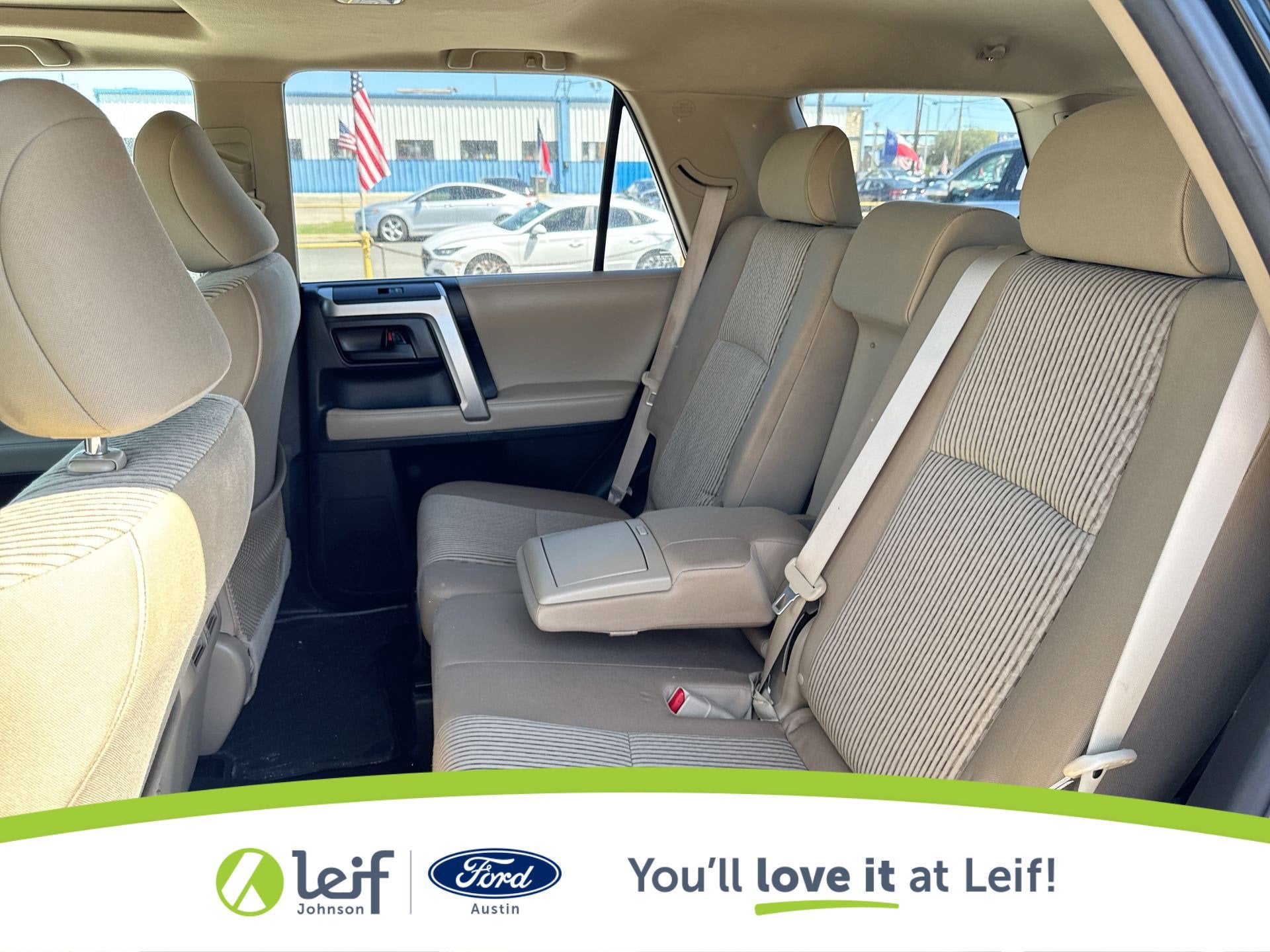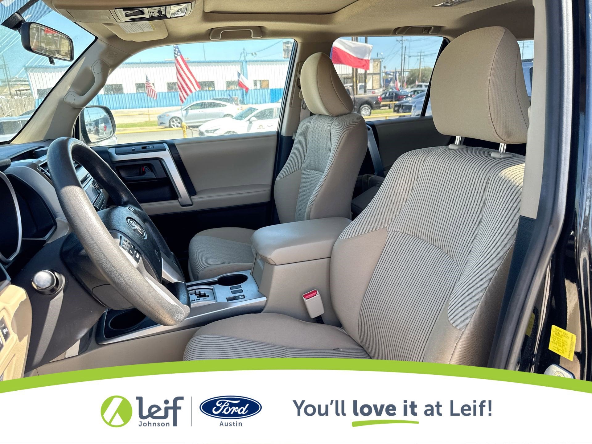 Clean CARFAX. 2011 Toyota 4Runner Black SR5 V6 4WD 5-Speed Automatic with Overdrive **CLEAN CARFAX**, **LOCAL TRADE**, **4WD**, 4WD, Sand Beige w/Low Fabric Seat Trim or Sport Fabric Seat Trim or Leather Seat Trim, ABS brakes, Alloy wheels, Compass, Convenience Package, Electronic Stability Control, Heated door mirrors, Illuminated entry, Low tire pressure warning, Remote keyless entry, Traction control. 17/22 City/Highway MPG 4.0L V6 SMPI DOHC Get a Pre-Loved Pre-Owned vehicle from Leif Johnson Ford! Come experience the transparent sales process and haggle free shopping here at Leif Johnson Ford. We have One of the largest pre-owned vehicles selection in the Austin area and they are all PRICED TO SELL. At Leif Johnson Ford, our commitment to our customers produces One of the most valuable assets and that’s trust! We know you can’t buy trust. You have to earn it! People have come to know that they can trust Leif Johnson Ford for the right selection, the right price and the right service . Ask us about purchasing this vehicle without ever visiting the dealership! Call us today at 512-706-6270 or stop by and see us at 501 East Koenig lane . Ask us about 7 day money back promise!! 501 E Koenig Ln Austin TX 512-706-6270. CALL OR COME BY TODAY. Call 512-706-6270 with any questions about this quality pre-owned vehicle. See it today at Leif Johnson Ford Superstore located at Airport and Koenig Lane. 512-706-6270.