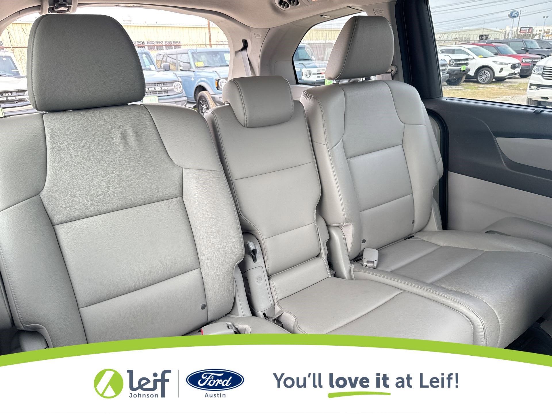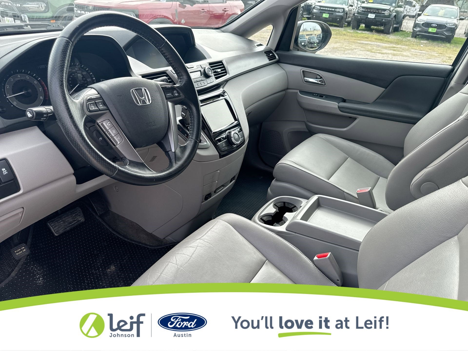CARFAX One-Owner. 2015 Honda Odyssey Alabaster Silver Metallic EX-L FWD 6-Speed Automatic 19/28 City/Highway MPG 19/28 City/Highway MPG 3.5L V6 SOHC i-VTEC 24V Get a Pre-Loved Pre-Owned vehicle from Leif Johnson Ford! Come experience the transparent sales process and haggle free shopping here at Leif Johnson Ford. We have One of the largest pre-owned vehicles selection in the Austin area and they are all PRICED TO SELL. At Leif Johnson Ford, our commitment to our customers produces One of the most valuable assets and that’s trust! We know you can’t buy trust. You have to earn it! People have come to know that they can trust Leif Johnson Ford for the right selection, the right price and the right service . Ask us about purchasing this vehicle without ever visiting the dealership! Call us today at 512-706-6270 or stop by and see us at 501 East Koenig lane . Ask us about 7 day money back promise!! 501 E Koenig Ln Austin TX 512-706-6270. CALL OR COME BY TODAY. Call 512-706-6270 with any questions about this quality pre-owned vehicle. See it today at Leif Johnson Ford Superstore located at Airport and Koenig Lane. 512-706-6270.