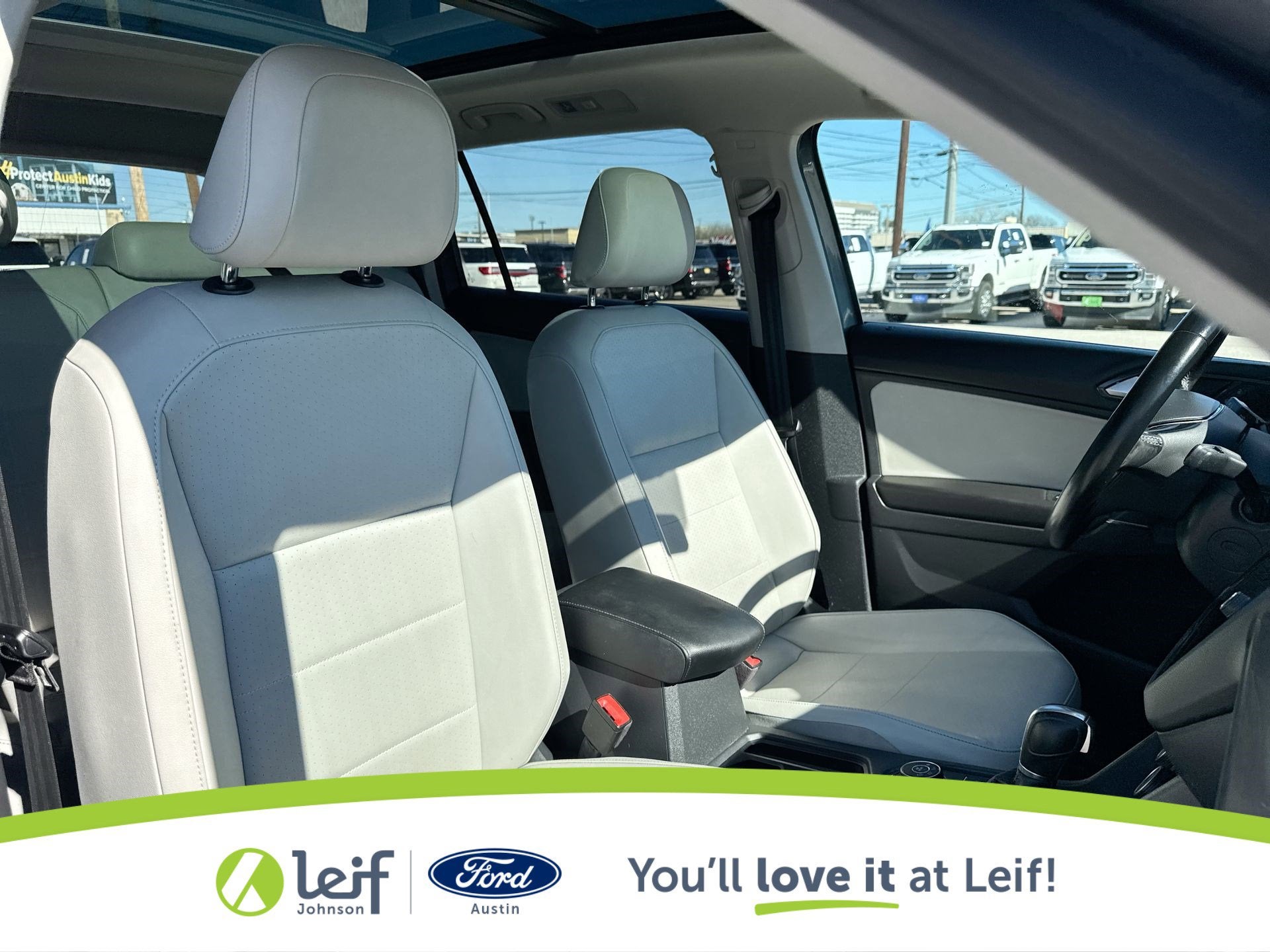2018 Volkswagen Tiguan Platinum Gray Metallic 2.0T SE 4Motion AWD 8-Speed Automatic with Tiptronic **LOCAL TRADE**, AWD, ABS brakes, Alloy wheels, Compass, Electronic Stability Control, Front dual zone A/C, Heated door mirrors, Heated Front Bucket Seats, Heated front seats, Illuminated entry, Low tire pressure warning, Panoramic Sunroof Package, Power driver seat, Power steering, Power windows, Remote keyless entry, Steering wheel mounted audio controls, Traction control. 21/27 City/Highway MPG 21/27 City/Highway MPG 2.0L TSI DOHC Get a Pre-Loved Pre-Owned vehicle from Leif Johnson Ford! Come experience the transparent sales process and haggle free shopping here at Leif Johnson Ford. We have One of the largest pre-owned vehicles selection in the Austin area and they are all PRICED TO SELL. At Leif Johnson Ford, our commitment to our customers produces One of the most valuable assets and that’s trust! We know you can’t buy trust. You have to earn it! People have come to know that they can trust Leif Johnson Ford for the right selection, the right price and the right service . Ask us about purchasing this vehicle without ever visiting the dealership! Call us today at 512-706-6270 or stop by and see us at 501 East Koenig lane . Ask us about 7 day money back promise!! 501 E Koenig Ln Austin TX 512-706-6270. CALL OR COME BY TODAY. Call 512-706-6270 with any questions about this quality pre-owned vehicle. See it today at Leif Johnson Ford Superstore located at Airport and Koenig Lane. 512-706-6270.