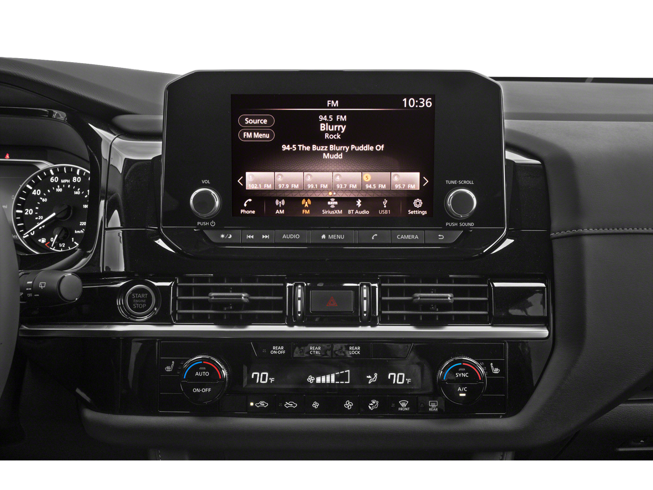 - Radio: AM/FM Audio System w/NissanConnect -inc: 6 speakers, Apple CarPlay and Android Auto, 8" color display w/multi-touch control, SiriusXM satellite radio w/advanced audio features, 2 illuminated front USB connection ports (1 type A, 1 type C) for iPod interface and other compatible devices, Bluetooth hands-free phone system, streaming audio via Bluetooth, hands-free text messaging assistant and Siri Eyes-Free/Google Assistant voice recognition