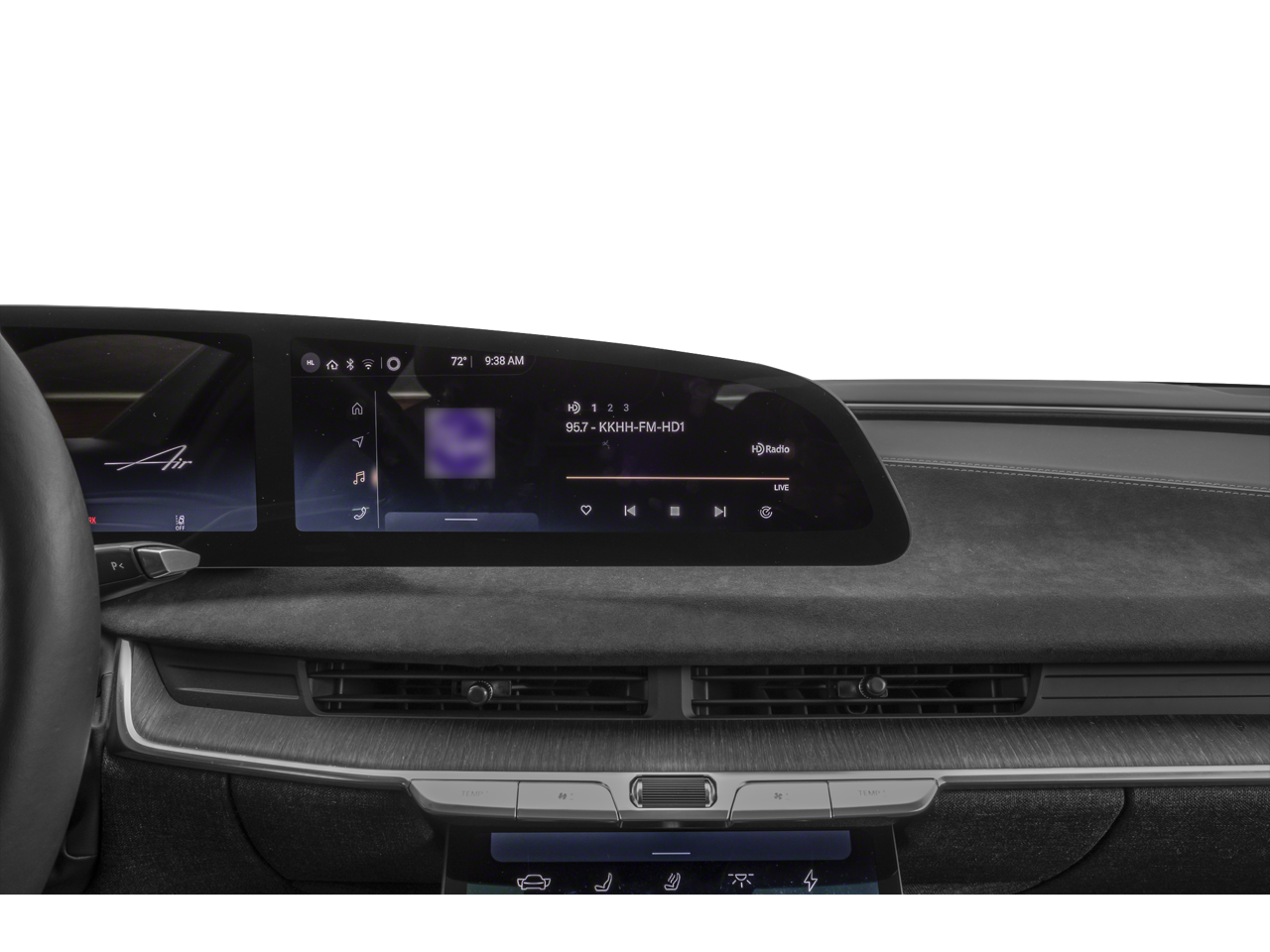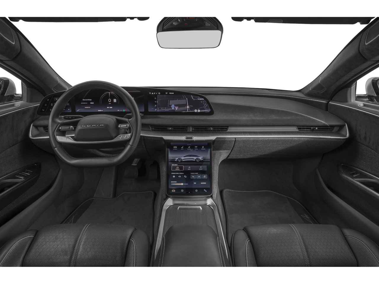 - Radio: AM/FM/HD w/Surreal Sound Audio -inc: 9 speakers, 34" glass cockpit center information driver display, 12.5" power-retractable pilot panel touchscreen display, native support for streaming apps (Spotify, iHeartRadio, TuneIn, Pocket Casts and Tidal), speed-sensing automatic volume control, Lucid assistant voice control system, USB-A and USB-C ports in front seats and Bluetooth® wireless technology